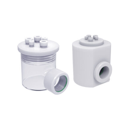 Compact sealed electrochemical cell available in 10ml, 20ml, and 30ml volumes. Ideal for micro-volume experiments requiring a stable three-electrode setup. Electrodes not included.