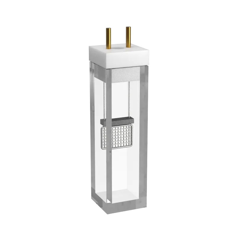 Compact sealed electrochemical cell available in 10ml, 20ml, and 30ml volumes. Ideal for micro-volume experiments requiring a stable three-electrode setup. Electrodes not included.
